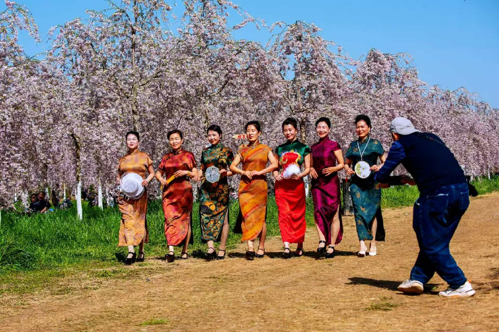 下午,大家一同前往丁村樱花园,垂枝樱花正值盛期,人在花海,心醉春光。模特们换上精美的旗袍,撑起小折伞,手执美人扇,开启与春天的完美邂逅,摄影师们更是忙碌不已。拍走秀、拍人像、拍特写…… 樱花繁茂,游人众多,拍摄素材丰富。还有学员专注花卉特写与微距拍摄,俯身捕捉花朵的细腻姿态,研习花卉摄影对焦与用光技巧。