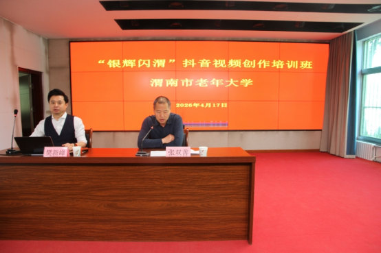 2026年4月17日,渭南市老年大学在一楼多功能厅举办“银辉闪渭”抖音视频创作专题培训班,全校各教学班、活动团体100多名学员参训。