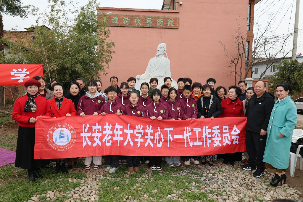 3月19日上午,长安子午曹村王维诗歌艺术馆人头攒动,热闹非凡,借长安老年大学研学基地挂牌之机,校关工委同步举办了一场“老少携手传承唐诗文化活动”。