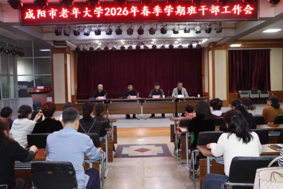 4月15日下午,咸阳市老年大学召开2026年春季学期班干部工作会议,全体班干部、各班主任参加会议,市老干部活动中心主任(老年大学校长)张建国出席会议并讲话。