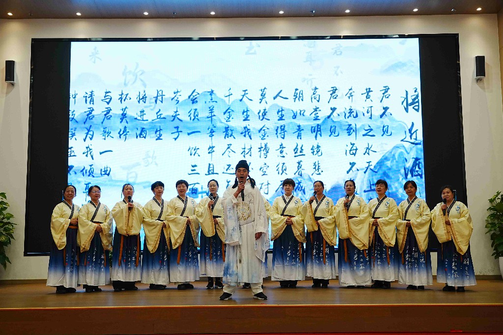 上午10时,联欢会在康馨园员工表演的《康馨园健康操》中欢快开场。随后,我校朗诵高级班以《君子之志在困厄中追寻光明》率先登场,学员们精神饱满、声情并茂,迅速点燃现场氛围。整场演出共有13个节目轮番亮相,精彩纷呈:既有《将进酒》《春江花月夜》等古典诗篇的深情吟诵,也有《诗韵春潮 唐意芳华》《唐诗里的长安》等融合古今的韵律演绎。朗诵艺术团带来的史诗《土地的誓言》,通过情景再现的方式,生动展现了中国人民十四年抗战的壮阔历程,感人至深;文景诗歌会的《母亲的灯》和康馨学院合唱社的《搀扶》,则深情讴歌亲情温暖与敬老美德,引发强烈共鸣。现场掌声与喝彩声此起彼伏,康养社区的老人们纷纷表示节目精彩动人,期待未来能有更多这样的文化交流。