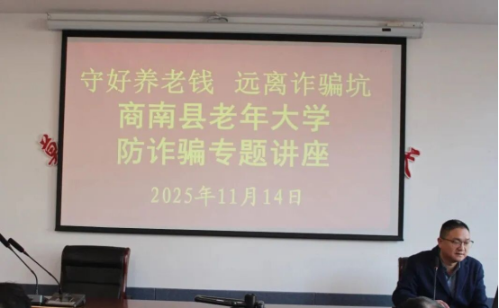 为切实提升老年群体防骗识骗能力,守护老年人财产安全,近日,商南县老年大学邀请县农行工作人员开展反诈骗宣传教育专题讲座,近百名离退休干部及老年大学学员参与活动,在轻松易懂的氛围中筑牢反诈“防护墙”。