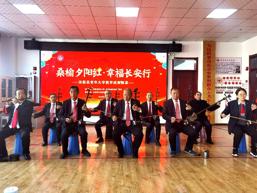 为充分展示老年教育教学成果,丰富离退休干部精神文化生活,11月27日,米脂县老年大学联合银州街道办事处、长安银行米脂县支行共同举办了“桑榆夕阳红 幸福长安行”教学成果展演。学员们以舞台为课堂延伸,用精彩的演出呈现了新时代老年人“老有所学、老有所乐、老有所为”的动人风采。