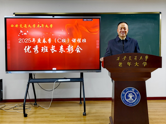 2025年12月22日,西安交通大学老年大学校园内暖意浓浓,隆重举行2025年春季课程班优秀班长表彰会议。学校领导与春季(C班)全体班长齐聚210教室,共同见证这一彰显老年教育工作者奉献精神的荣誉时刻,副校长张西亚主持表彰会。会议以“弘扬西迁奉献精神,凝聚班级团结力量”为主题,通过表彰先进、分享经验,展现我校加强班级建设,提升管理水平的成效,为今后全校的班级管理树立了新的标杆。