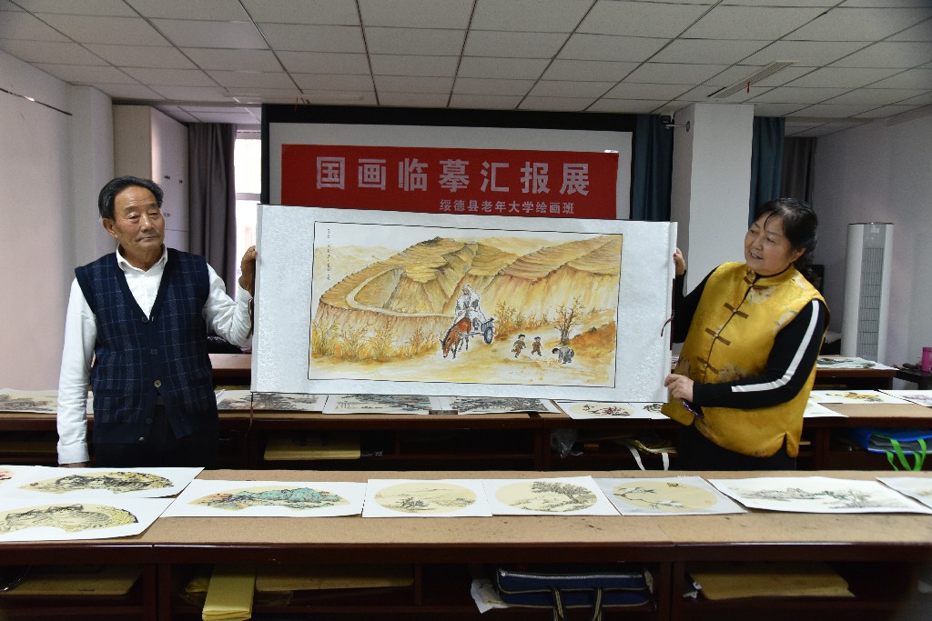 绥德县老年大学绘画教学成果展于12月25日在学校教室开展。校长李际龙及教务处、办公室工作人员一同观展。