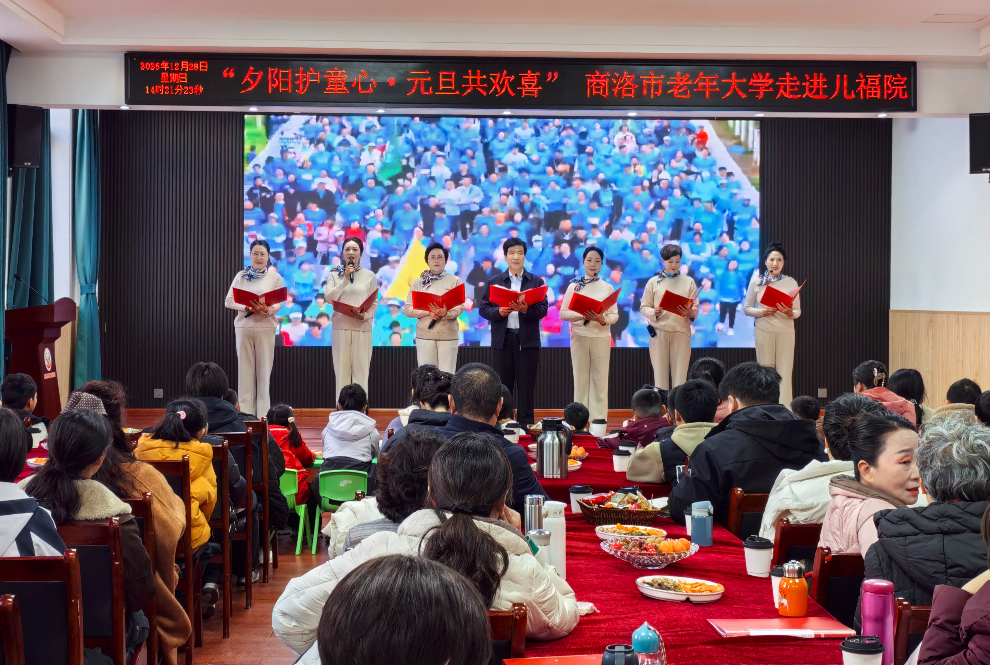 12月28日,商洛市老年大学“银龄同庆迎新年 艺彩绽放展芳华”校园文化周——走进市儿童福利院开展庆元旦 “夕阳护童心·元旦共欢喜” 活动。市民政局干部、市老年大学干部职工和朗诵班全体学员、商洛学院青年志愿者,一同为孩子们带来了一个充满文艺气息与温馨陪伴的假日。