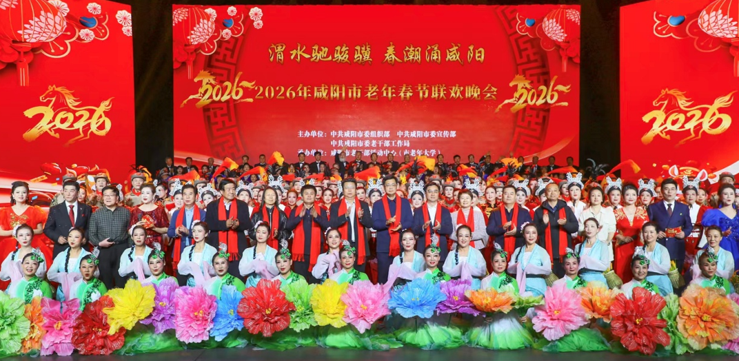 骏马奔腾,春潮涌动。为充分展现新时代老年人热爱生活、昂扬向上的精神风貌,营造欢乐、祥和、喜庆的节日氛围,1月29日,由咸阳市委组织部、市委宣传部、市委老干部局联合主办,市老干部活动中心(市老年大学)承办的“渭水驰骏骥 春潮涌咸阳”2026年咸阳市老年春节联欢晚会在咸阳大秦剧院精彩上演。