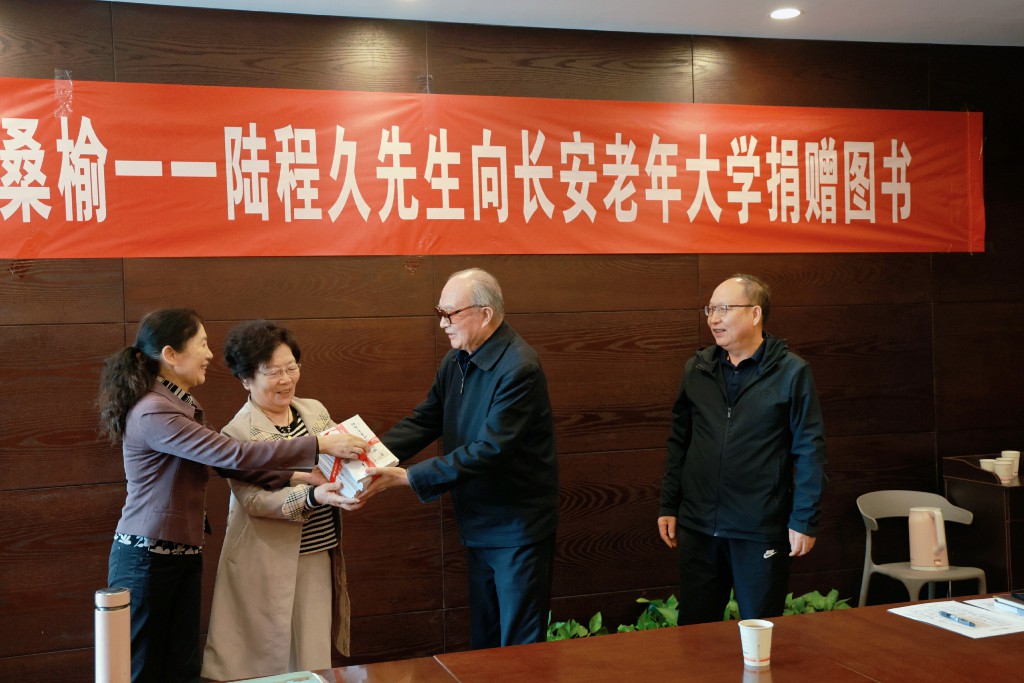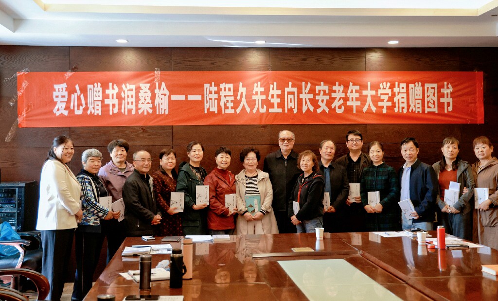 活动伊始,温情满满的赠书仪式正式开启。长安著名作者陆程久先生秉持公益初心,向长安老年大学捐赠《陆程久书古今经典摘编》70余本。答贵龙同志简要介绍了陆老先生的基本情况,陆先生也分享了捐赠初衷:希望以书籍为纽带,丰富老年学员课余文化生活,充实校园图书室馆藏资源,让笔墨书香浸润校园每一个角落。答贵龙、何艳茹代表学校接受赠书,并对陆先生的爱心善举致以诚挚感谢。