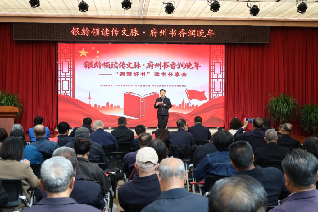 最美人间四月天,正是读书好时节。4月23日,一场以“银龄领读传文脉·府州书香润晚年”为主题的“遇荐好书”读书分享会在书香氤氲的县图书馆举行。活动由府谷县老年大学、府谷县离退休干部党总支、府谷县图书馆联合主办,旨在通过老年阅读者的引领与分享,传递文化薪火,营造全民阅读的社会风尚,让书香浸润晚年生活。老年大学校长、离退休干部党总支书记郝玮致辞,图书馆馆长闫林宣读倡议书。