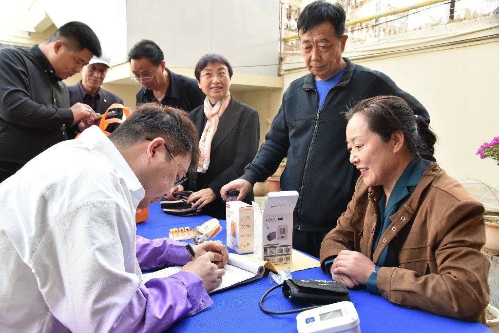 活动现场,张喜洋医师结合PPT演示,围绕老年人口腔常见病症、日常口腔护理要点、义齿科学保养、口腔疾病预防等内容,开展专题科普讲解,为学员们普及科学护齿知识。讲解结束后,医师团队为有牙齿问题的学员进行现场口腔检查,针对个体情况给出专业诊疗建议;同时,医护人员还为现场学员免费测量血压、血糖,并逐一解答大家提出的口腔健康疑问。