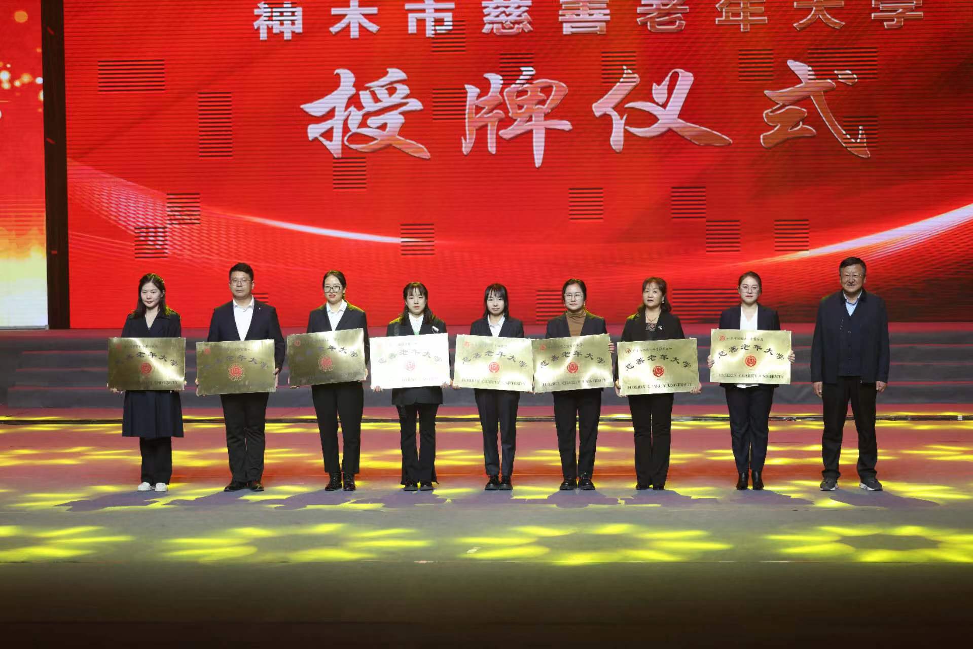 晚会上,神木市委组织部副部长王燕同志为今年秋季新设立的神木市老年大学店塔分校、红柠社区教学点、新元社区教学点、新光社区教学点、鸳鸯塔社区教学点授牌,神木市慈善协会会长张增光同志为大柳塔等八个慈善老年大学授牌。