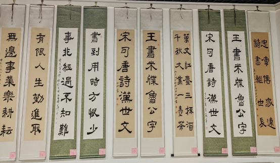 隶书基础25C1班的学员们在牛福寿老师的精心指导下,系统学习了《乙瑛碑集字对联》《隶书春联》及书法艺术、临摹与创作技巧等方面的知识。经过近1年的书法学习,较好地掌握了对隶书的基本笔法与提案技巧,而后逐步向实用性转化,使得学员基本达到自己书写对联的能力,他们的作品质量明显提升,观者好评不断,给人耳目一新的感觉。