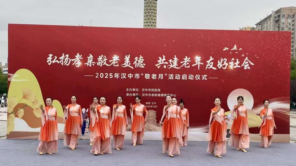 10月10日,2025年全市“敬老月”活动启动仪式在中心广场盛大启幕,汉中老年大学作为唯一受邀参演单位,凭借三个精彩文艺节目赢得现场观众一致好评,成为仪式上亮眼的“银发风景线”。