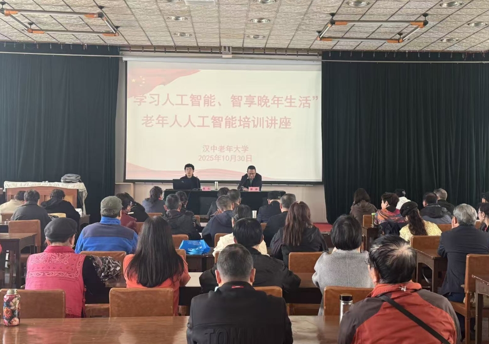 为助力广大老年人融入人工智能时代,智享晚年幸福生活,10月30日,汉中老年大学举办了“学习人工智能、智享晚年生活”老年人人工智能培训讲座,邀请陕西理工大学教师张喆讲授,近100名学员参与其中。