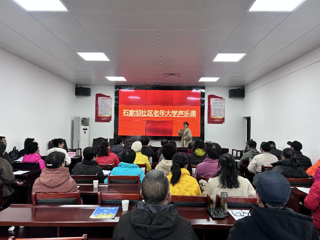 11月26日至27日,城固县老年大学联合县民政局到石家坝社区组织开展了“岁月如歌”银龄课堂进社区--公益舞蹈、声乐培训班活动。社区报名参加学员60多人,授课教师由城固县老年大学教学经验丰富的穆思静、罗玉茜2名专业舞蹈、声乐教师负责授课。