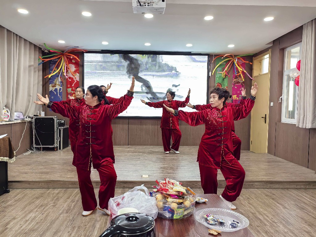 活动期间,校园内各班级和校外教学点的活动场地暖意融融、笑语盈盈。声乐班学员歌声嘹亮,用经典红歌抒发爱国情怀与幸福心声;舞蹈班学员身着靓丽服饰,舞步灵动,在欢快的旋律中展现活力风采;书法班现场挥毫泼墨,一幅幅饱含新春祝福的书画作品跃然纸上;旗袍班学员身着雅致旗袍,身姿优雅,伴着古典旋律款款走秀,尽显东方韵味与老年学员的端庄气质;太极班一招一式刚柔并济,尽显中华传统养生文化魅力。各班级活动形式多样、内容丰富,学员们以饱满的热情投入其中,在互动与表演中感受节日的喜悦。