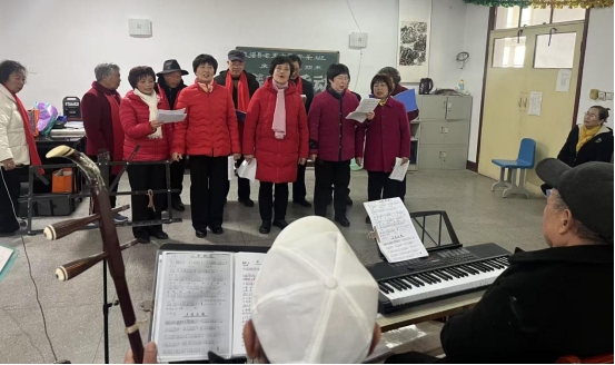 活动现场,学员们各展所长、神采飞扬。舞蹈班学员身着艳丽服饰,踏着欢快节拍起舞,《黄土情韵》的陕北秧歌扭出乡土风情,《幸福赞歌》的轻盈舞步舞出晚年幸福;剪纸班的“巧巧手”们指尖翻飞,红纸在剪刀开合间化作栩栩如生的祥龙、喜庆的福字、饱满的灯笼,一幅幅充满年味的剪纸作品,承载着大家对新年的美好祝愿;朗诵班学员以饱满深情诵读《黄河礼赞》《新年寄语》,激昂的语调与真挚的情感交织,传递出对祖国、对生活的无限热爱。