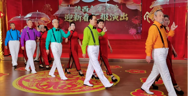 演出在欢快喜庆的民乐合奏《春节序曲》中拉开帷幕。校艺术团各表演团队的老同志倾情献演,13个精心编排的节目依次亮相。合唱《祖国颂》唱响赤子情怀,时装走秀演绎时尚老人银发风采,京剧选段曲调高亢,韵味十足,太极刚柔并济,舞蹈活力四射,交响乐团一曲《拉德斯基进行曲》用铿锵有力的节奏和优美流畅的旋律将演出推向高潮。现场掌声热烈,精彩之处引来观众阵阵喝彩。参演老同志纷纷表示,陕西老年大学为银龄群体搭建了很好的学习和交流展示平台,参加学习和活动已成为晚年生活中不可或缺的重要内容,今后还要不断通过在校学习提升艺术素养和表演质量,用更高水平的学习成果,展现新时代老年人有作为、有进步、有快乐的精神风貌。
